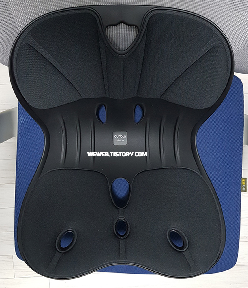 참고로 커블로 인한 자세가 올바른 자세이지 편한 자세가 아니라는 점을 아시면 좀 더 적응하는데 도움이 되실거예요. 그리고 커블로 앉았다고 해서 계속 해서 시종일관 올바른 자세로 앉아 있을 수 있느냐? 그렇지는 않아요. 시종일관 빳빳하게 허리를 세우고 있기란 쉽지 않죠? 커블의 도움을 받아서 조금 더 신경을 쓸 수는 있는데 그러다 자세가 풀리고 또 커블 체어 덕에 다시 자세 고쳐잡고 이렇게 반복하게 됩니다.