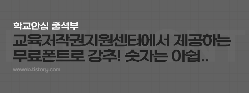 정말 괜찮은 유료수준의 멋진 고딕 폰트를 추천드립니다. 학교안심 출석부체 입니다. 다만 조금 아쉬운건 숫자는 좀 안예쁘네요? 하지만 제목체로 사용하기엔 정말 좋은 것 같습니다. 본문도 좋긴 한데 숫자만 잘 피해서 쓰면 좋을 것 같습니다! B, L체 두가지 타입으로 되어있습니다!
