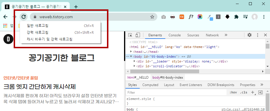 크롬&엣지 간단 캐시삭제 및 새로고침